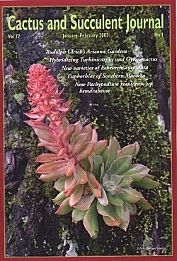 In this issue, Myron Kimnach describes two new varieties of Echeveria cuspidata, a plant which occurs only in northern Mexico. In contrast with the wet-growing epiphyte on the cover, E.cuspidata is confined to places where the plants seek a little shade under small shrubs and between rocks, facts which might inform how we grow each of these species in our collections. |