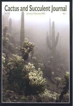 | Cover illustration: Laurence Garvie captured this magnificent moment on a foggy December day in the North Maricopa Mountain Wilderness southwest of Phoenix, Arizona. The cacti in the photo are the Teddy-bear Cholla (Cylindropuntia bigelovii) and large columnar Saguaros (Carnegiea gigantea), both of which are locally common. Also visible in the photo are the perennials Encelia farinoso and Lycium berlandieri. Many years of below-average rainfall had put a strain on even the most hardened desert plants in this area, and many stands of cacti exhibited high levels of mortality. The drought broke when the 2004-2005 winter brought an unusual abundance of rain. Fog is rare in southern Arizona, with only a handful of foggy days recorded each year. In contrast, it is a dominant form of precipitation in many coastal and environments. |