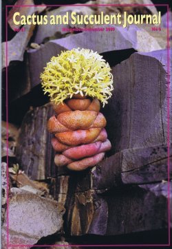 | On the cover: Rob Skillin photographed this blooming Crassula columnaris late in the day in the Ceres Karoo, South Africa, and to me it epitomizes the appeal of the genus. We had spent the day making futile stops in a bleak, moonscape-like land, the ground covered with a pavement of sedimentary stones either broken into precise geometric plates or so abraded and polished by the winds that they looked like meteorites. A local farmer told us that it had rained 25 millimeters that year, the most in seven years, and aside from some very odd bulbs, the land was pretty barren. When we finally came upon this rocky outcrop, supporting nice plants of Tanquana prismatica and Euphorbia multiceps as well as the crassula, the day seemed suddenly worthwhile. We all took pictures of this plant, and Rob's came out the best-it's great to travel with people who combine plant knowledge with photographic skill. Fred Dortort |