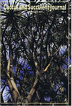 | On the cover: Duke Benadom photographed this largest of all known Aloe species, Aloe barberae (AKA A.bainesii) as a lead in to what he believes to be a very important book in the making. Three of the most qualified people who ever lived to write on this immense genus (ca. 400 species), Susan Carter-Holmes, John Lavranos, and Len Newton have collaborated in creating this opus. Initial planning was to begin where Reynolds left off, but the two expensive volumes produced by Reynolds are seldom available. This upcoming book, probably available in 2011, will cover all known species. I doubt that there will ever be another work of this magnitude on this fascinating and diversified genus. The plant pictured is in the Benadom's garden, but it's dwarfed by the immense plant in the garden of Loran Whitelock, one of the world's foremost cycad experts. It's nice to know that the largest specimen in a renowned cycad garden is a succulent, and not a cycad. |