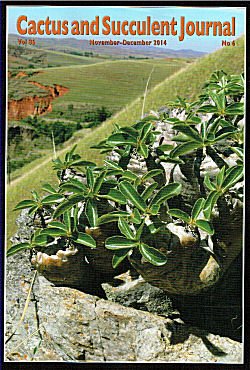 | On the cover: While it may seem obvious that this Pachypodium can be seen from some distance, unless one gets close enough and pays attention to the flowers, as Petr Pavelka did to take this photograph, the fact that it is a new species may go un-noticed. Quite noticeable is the erosion taking place on the nearby hill. One wonders how long is left to find and study plants that live on the Great Island? |