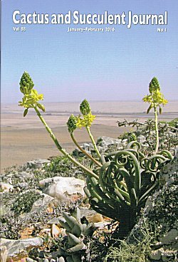 | On the cover: The Orange River, which forms part of the border between South Africa and Namibia can be seen behind this Bulbine ophiophylla. The picture was taken in 2003 by your Editor at Kortdoringberg, a 400m outcrop about 25km E of Alexander Bay, while on a tour guided by Graham Williamson. Graham's article on Bulbine in this Journal is perhaps the most significant work on the genus as a whole this century. |