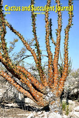 | On the cover: Fouquierias are well known for their unique resinous trunks, and the extraordinary orange color found in Fouquieria shrevei is especially striking and caught Brian Kemble's eye. Cultivating this species has not proved straightforward, with only limited success, so far, with seedlings in pots. |